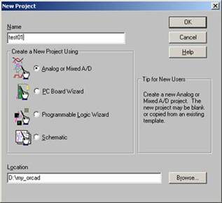 Maka project pertama PSPICE siap untuk dibuat.
