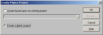 5. Setelah itu, muncul dialog untuk “Create PSpice Project”. Pilih saja “Create Blank Project”.