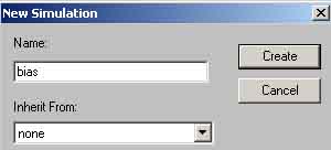 2. Akan muncul sebuah jendela, seperti pada gambar 15. Ketikkan nama profil simulasi, misal Bias. Pada list “Inherit From”, pilih none. Klik Create.