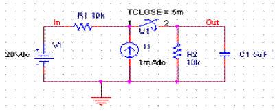 Gambar 24 : rangkaian dengan sebuah tegangan PULSE dan sumber arus.