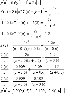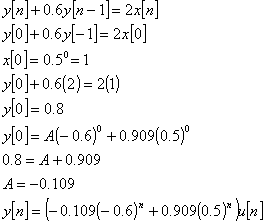 y[n] mempunyai persamaan yang identik dengan soal d, hanya saja konstante dari unsur tanggapan pulsa h[n] berubah nilainya. Sehingga