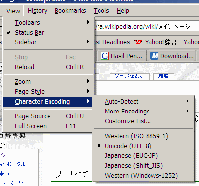 Suatu halaman web yang benar seharusnya memberi informasi ke browser tentang pengkodean yang dipakainya. Kalau hal ini lalai dilakukan, browser biasanya menebak-nebak dan kadangkala (seringkali?) tebakannya salah. Yang bisa kita lakukan adalah mencoba kemungkinan pengkodean lain. Di Firefox 3, hal ini dilakukan dari menu View – Character Encoding: