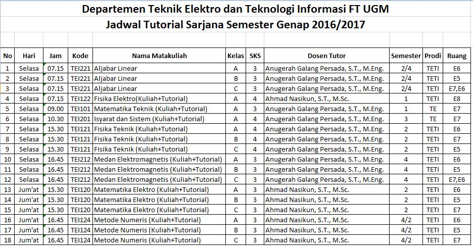 - Kegiatan tutorial akan dimulai pada Selasa, 07 Februari 2017 dengan jadwal terlampir.